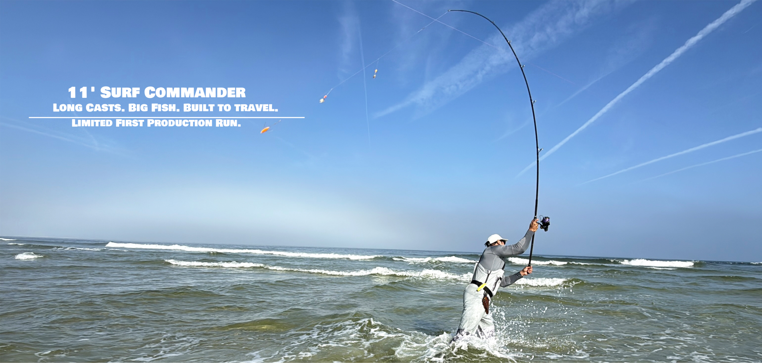 The 11′ Surf Commander is built to launch baits far beyond the breakers, with the length and power to reach fish that sit well past ordinary casting range.